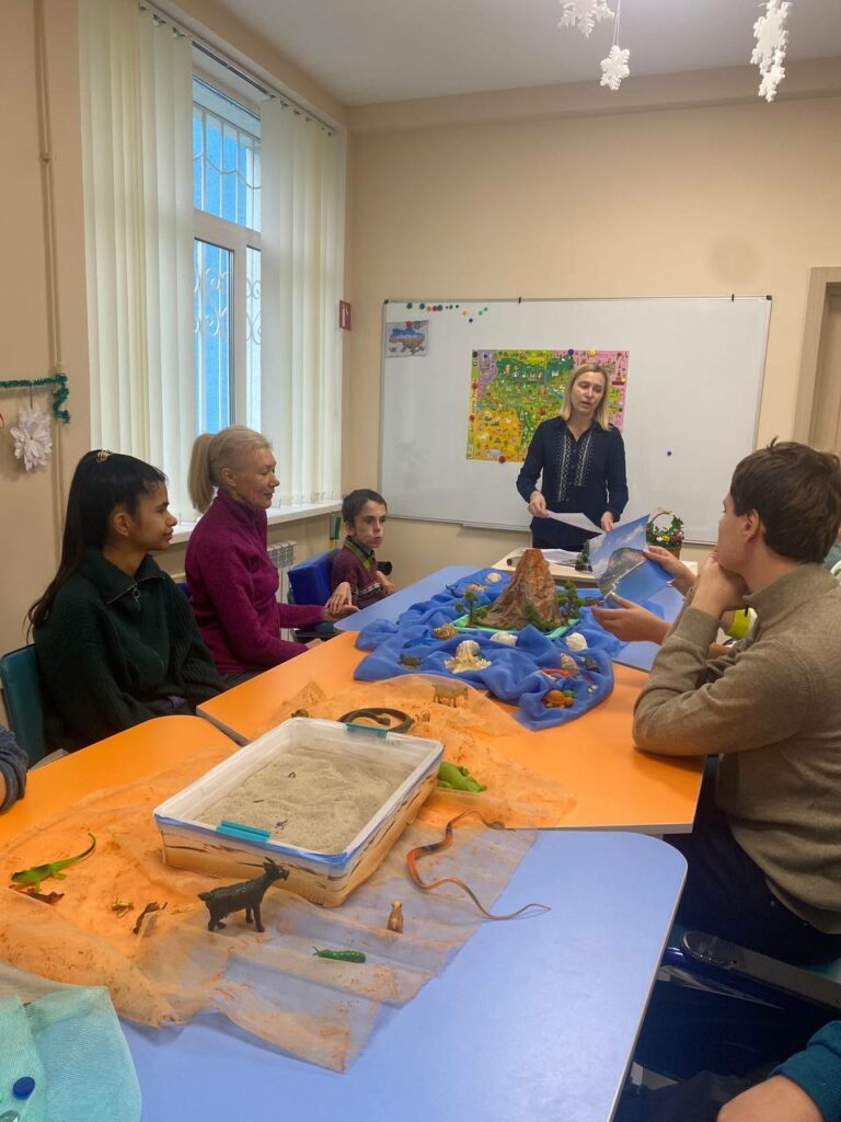 Побували в мальовничому Криму, відвідали мис Фіолент, Сонячну долину, Ластівкове гніздо та споглядати чудернацькі кам’яні фігури на гірському масиві Демерджі-яйла. Мандрівка найбільшою пустелею Європи – Олешківськими пісками з їх чисельними барханами, унікальними флорою та фауною дуже вразила вихованців Центру. Молодь також завітала до міста «мільйона троянд» – Донецька, та дізналася про багату його вугільну історію. Наприкінці заняття в творчій роботі «Квітка для Донецька» вони разом створювали символічну клумбу троянд.