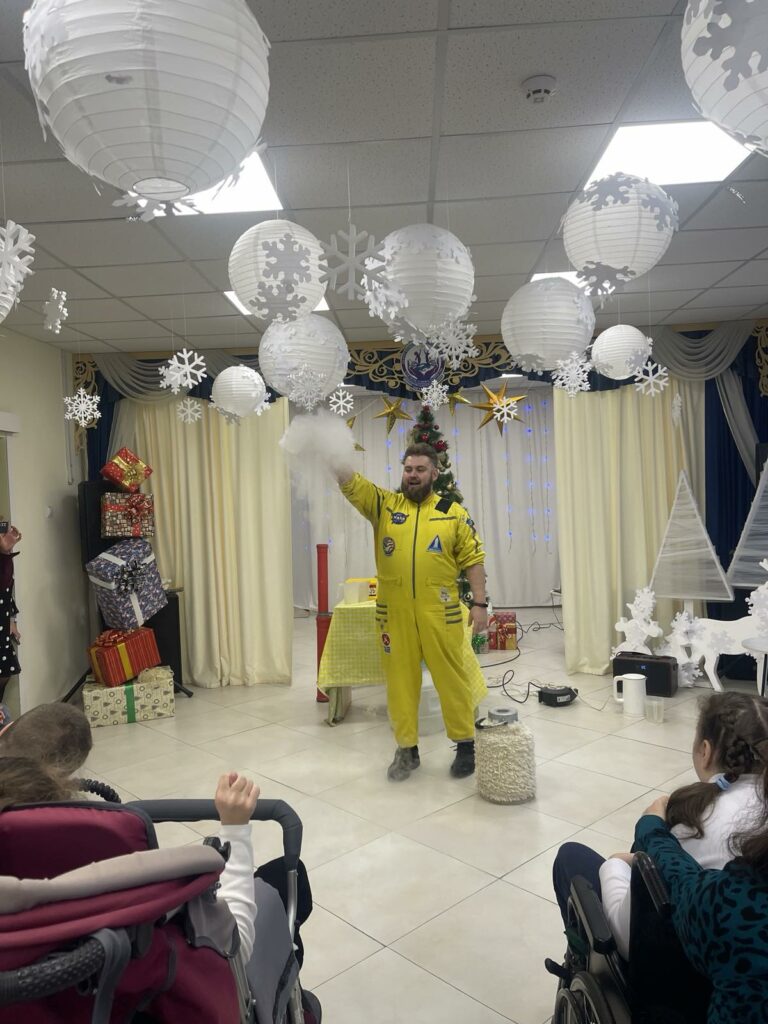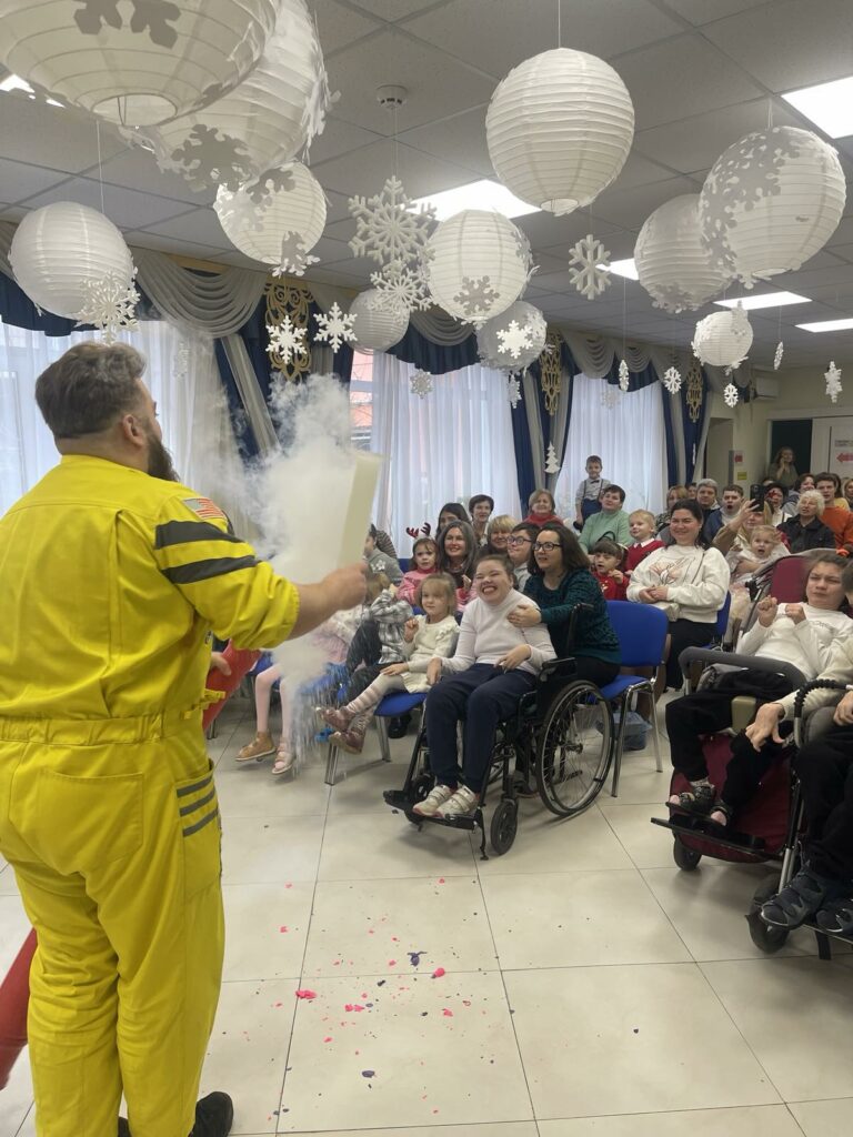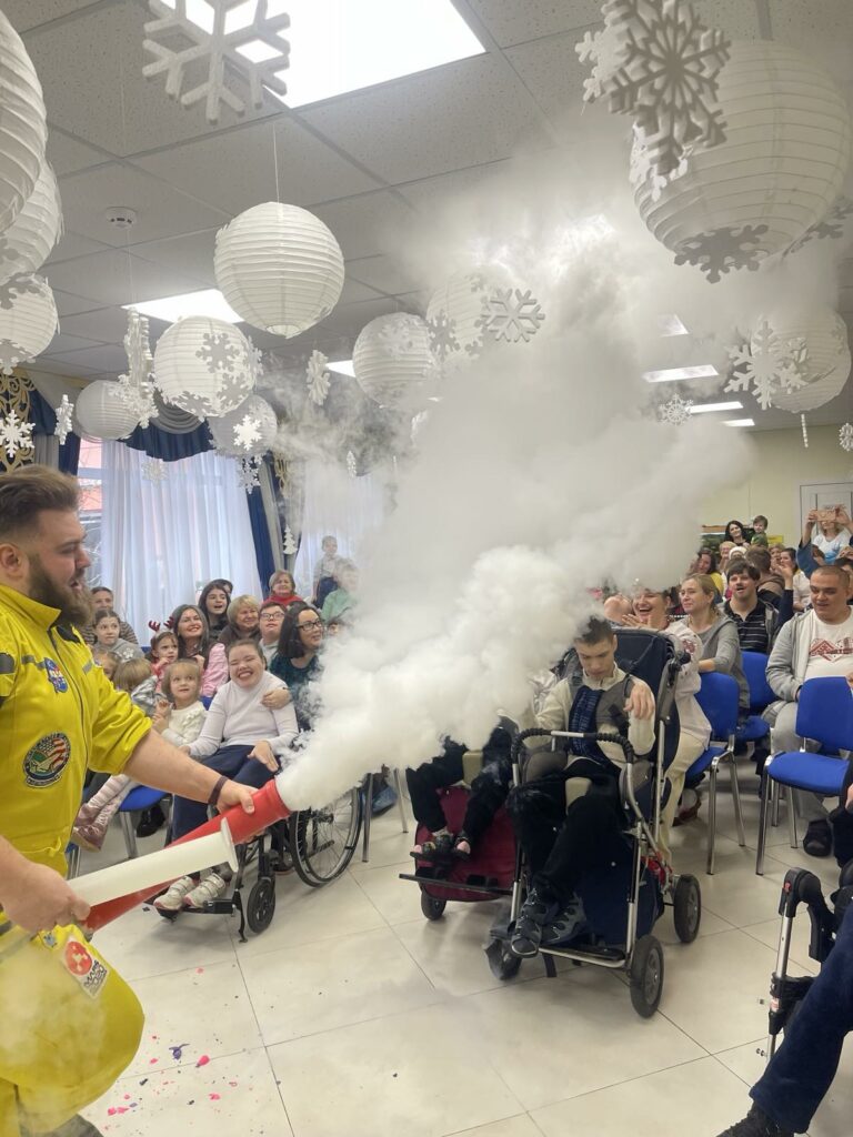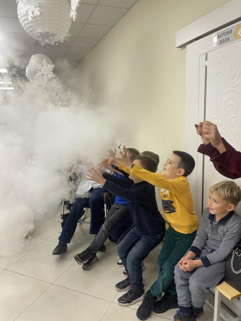 Сьогодні на святковому, унікальному заході з інклюзивним підходом вихованці Центру реабілітації з радістю зустрічали у себе Святого Миколая та його помічників, які прийшли до них із щедрими подарунками та приємними сюрпризами. На дітей та молодь чекала цікава розважальна, інтерактивна програма кріо–хімічного шоу від Eduard Malakhov, а також ігри, розваги, веселощі і звичайно ж солодкі подарунки.На цій теплій, чарівній події були присутні дітки з люблячим, щирим серцем – учні Ліцей «Домінанта» Дніпровського району м. Києва, які прийшли до вихованців Центру з подарунками.Святий Миколай привітав всіх у залі з Новорічними святами та побажав дітям і дорослим здоров’я, щастя, радості, миру, добробуту, солодких миттєвостей життя та щирих посмішок рідних.Дякуємо Eduard Malakhov за шоу, неповторні емоції і креатив.Окрема подяка педагогам та учням Ліцей «Домінанта» Дніпровського району м. Києва за щирість, чуйність, турботу, піклування про вихованців Центру та надані засоби гігієни для груп денного перебування.