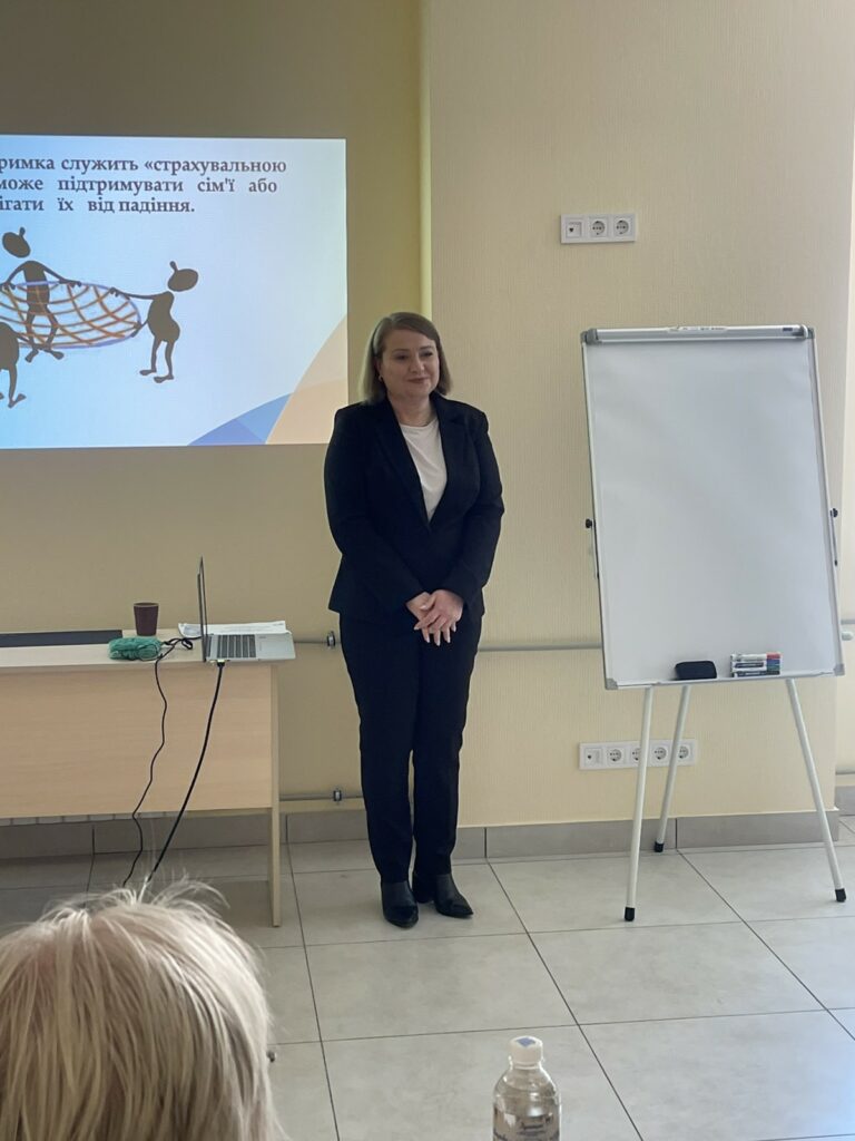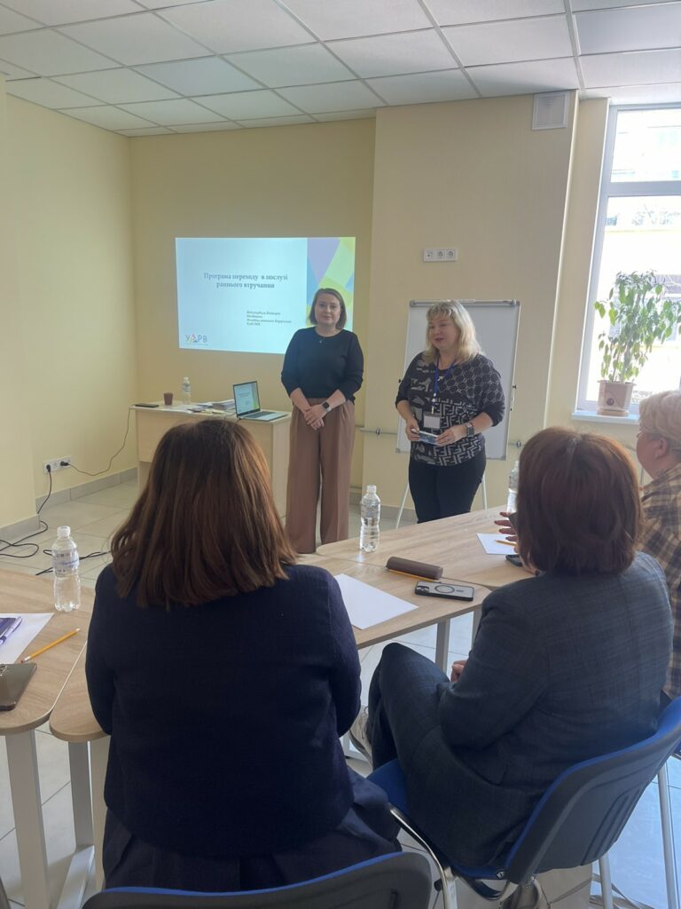 В Україні активно розбудовується система раннього втручання, спрямована на створення комплексної підтримки сімей з дітьми від народження до 4 років, які мають порушення розвитку або ризик їх виникнення. З метою ознайомлення з особливостями цієї послуги, організацією роботи команди раннього втручання Центру реабілітації, було проведено серію навчальних тренінгів для спеціалістів інших організацій : «Сила соціальної підтримки», «Програма переходу в послузі раннього втручання», «Послуга раннього втручання комплексна підтримка сімей». Завідувач відділення Вікторія Медвецька ділилася досвідом впровадження послуги в роботі Центру, розповідала про алгоритм дій команди раннього втручання орієнтований на виконання сімейного плану та розвиток стратегії у повсякденному житті.
